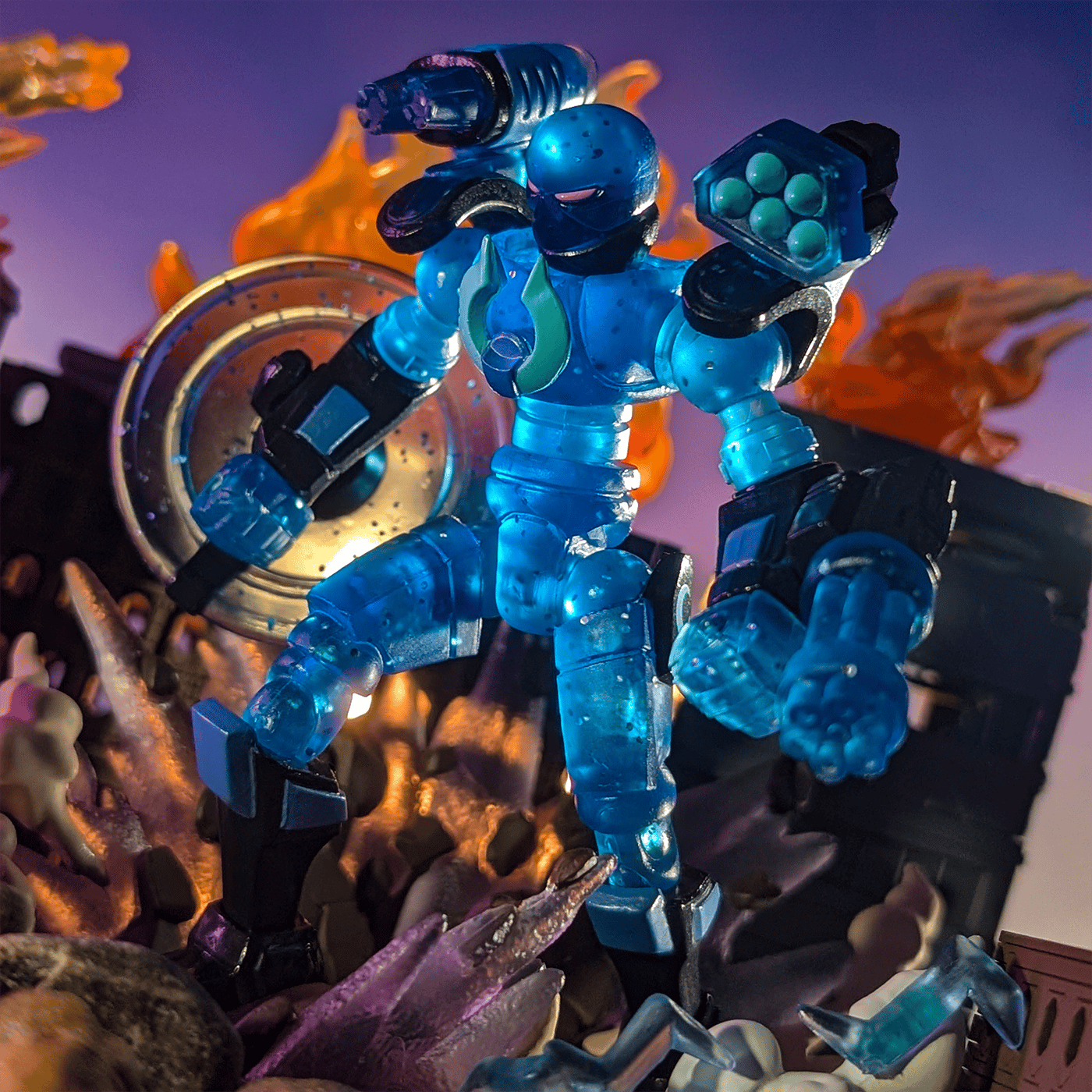 16 total parts plus 4 Switch Pins. Made of durable, full color injection molded PVC plastic. Parts are completely interchangeable with all Glyos System Series figures.